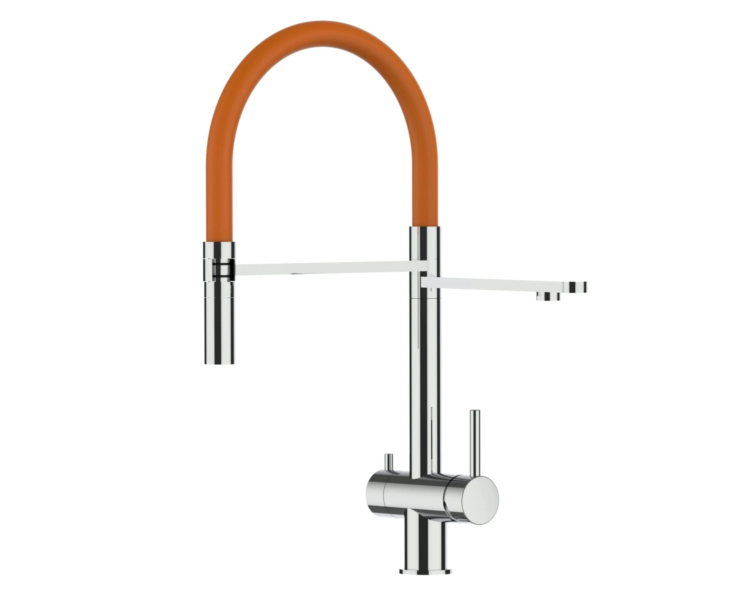 3 Wege Wasserhahn Küchenarmatur Spültischmischer, Edelstahl Massiv, 360° Schwenkbarem Schwarz Auslauf, Abnehmbare 2 Strahl Handbrause, Poliert