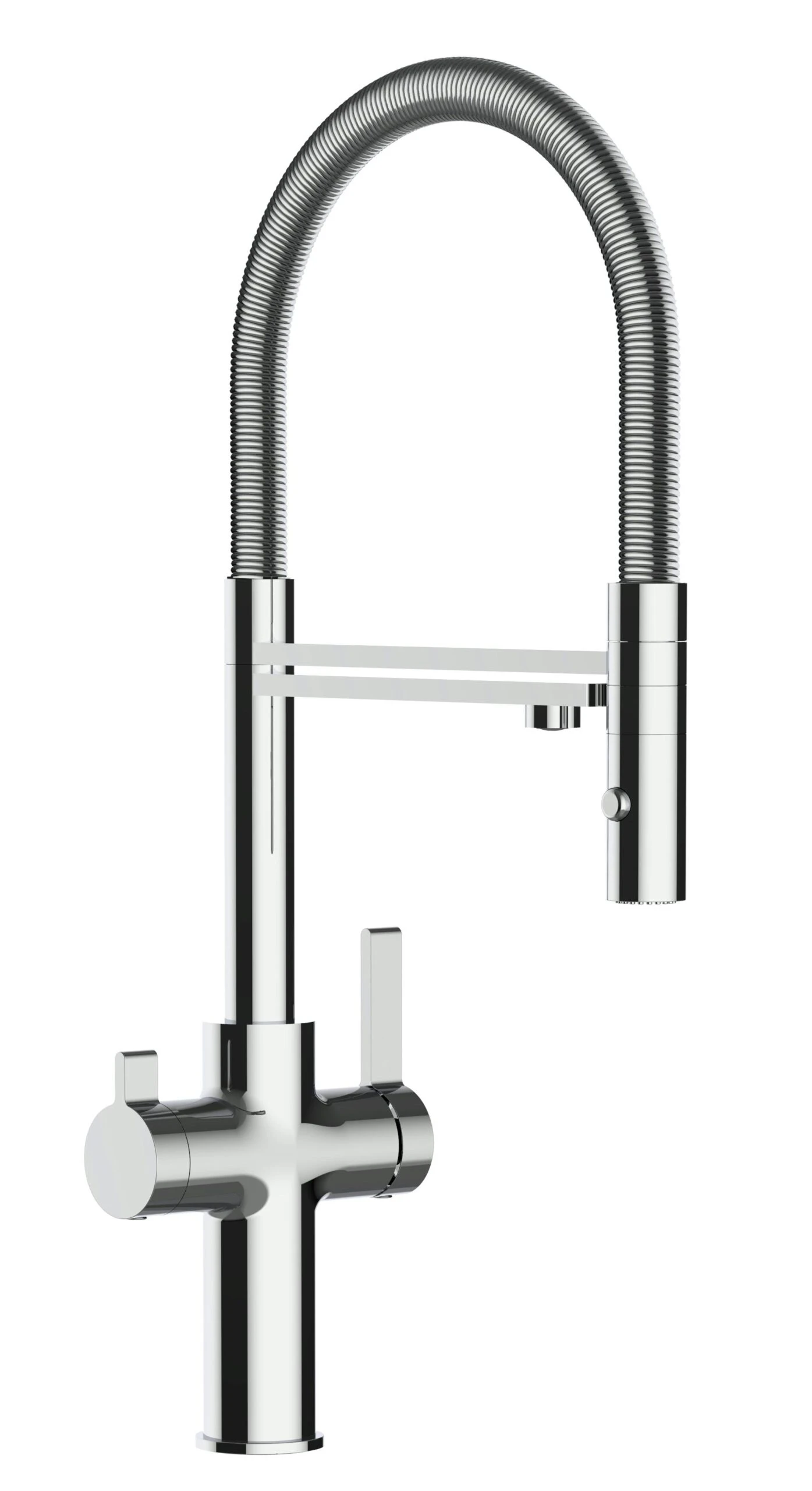 - Flex-Schlauch aus Stahlfeder mit höchstem Hygiene Anspruch – Grosser Aktionsradius von ca. 60 cm durch die Schlauchbrause.