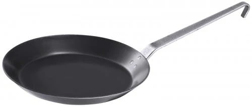 3x Contacto Crêpes-Eisenpfanne (Omelettepfanne) aus ungeschwärztem Stahl, Materialstärke 2 mm, gebläuter Flachgriff mit Aufhängeöse, induktionsgeeignet, schwere Qualität Durchmesser: 20 cm, Höhe: 2 cm, Stiellänge: 18 cm