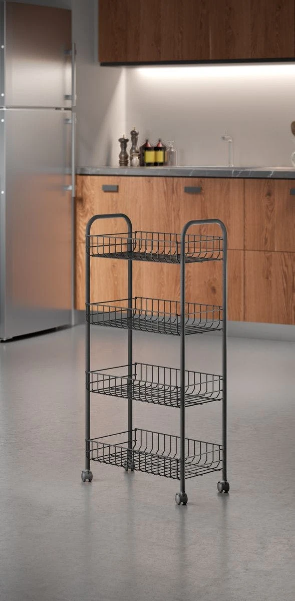 Auf den 4 Ablageflächen ist genügend Platz für Ihre Utensilien oder auch Lebensmittel.