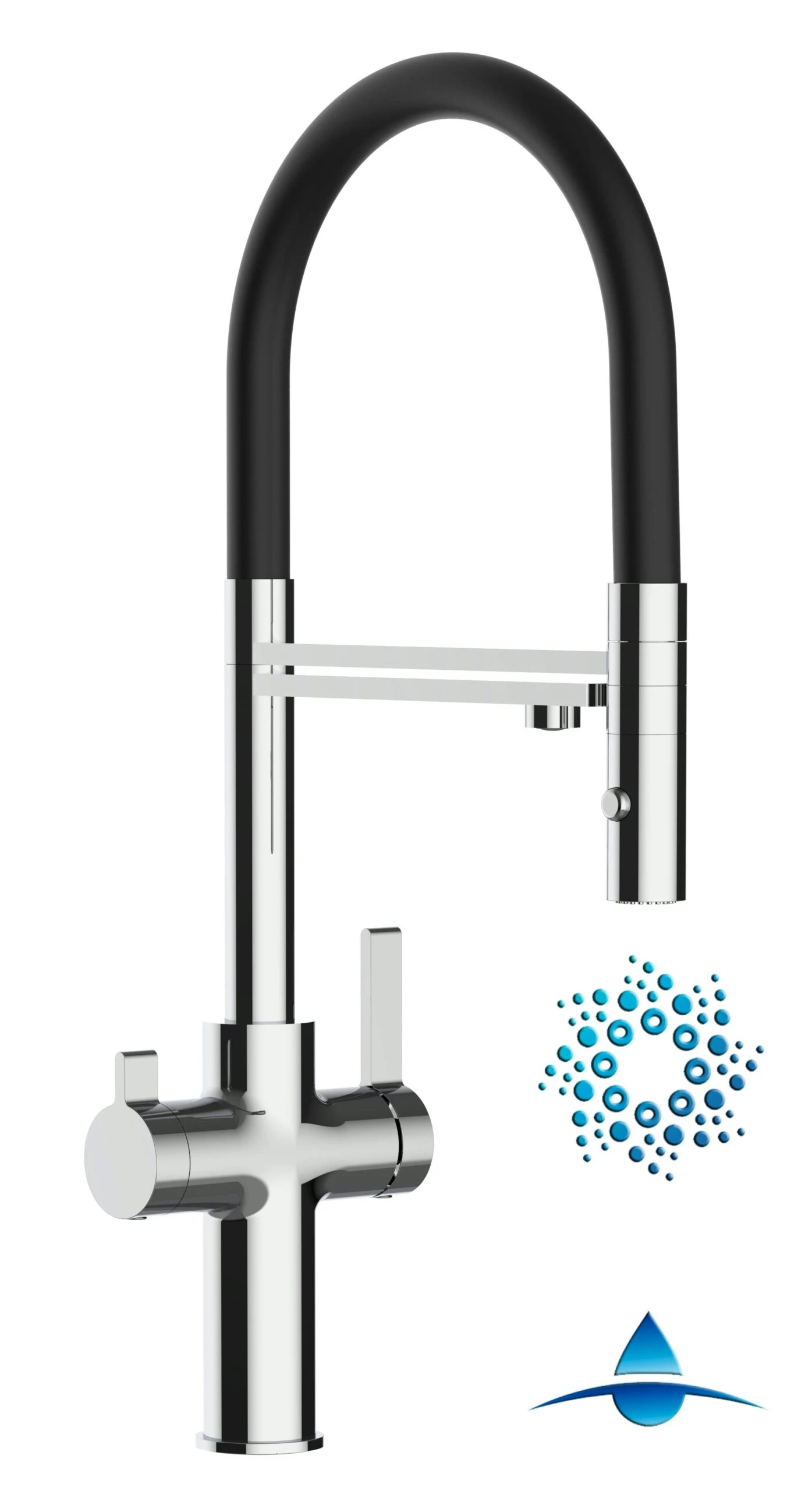 4 Wege Wasserhahn Küchenarmatur Spültischmischer FC, Verchromt, Mit 360° Schwenkbarem Blau Auslauf Und Abnehmbare 2 Strahl Handbrause