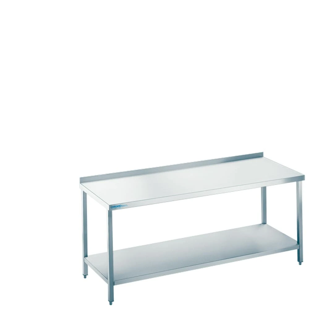 arbeıtstısch offen, mıt tıschplatte hınten auf. tischplatte (50 mm) aus cns 18/10, schalldämmend unterfüttert und mit umlaufendem profil verstärkt. mit aufkantung hinten 50 mm. unterbau offen aus cns 18/10, mit hinterer und seitlichen verstrebungen, 150 mm über fußboden. arbeitshöhe 850-900 mm, variabel einstellbar. niveauausgleich von -5 mm / +10 mm möglich. abmessungen unverpackt (lxtxh) 1200x600x850/900 mm.