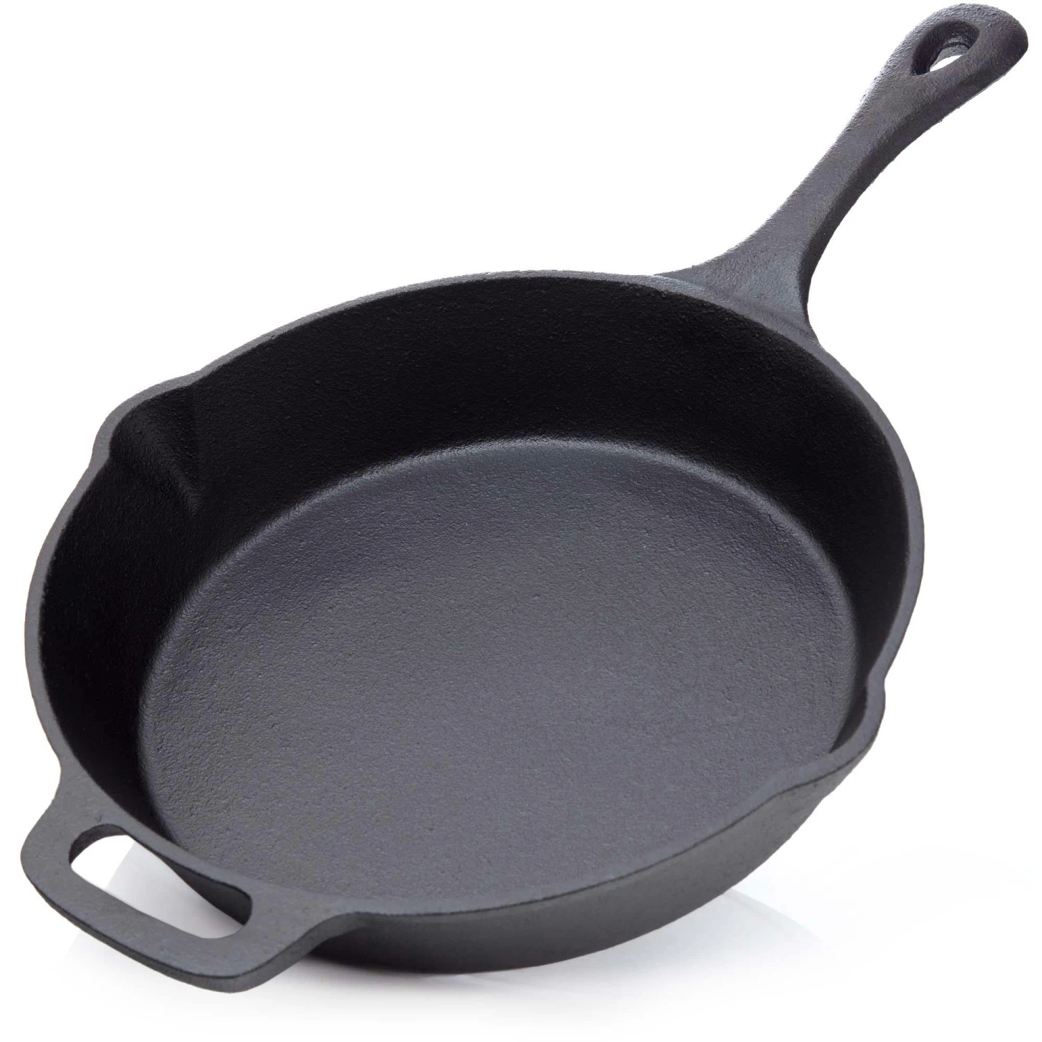 Die gusseiserne Pfanne ist ein Profiwerkzeug für die Küche. Zudem ist sie ein wahrer Allrounder, was ihr Einsatzgebiet betrifft: Steak, Filet, Lachs, Pizzabrot, Hackbällchen in Tomatensoße, Köttbullar, Geschnetzeltes, Kartoffelpuffer, Reis mit Gemüse und viele weitere Gerichte sind möglich! Achte darauf, dass das Gusseisen recht schwer ist und der Griff beim Kochen sehr heiß werden kann.