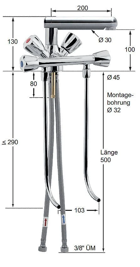 - Edelstahlschläuche mit 3/8″ Überwurfmutter