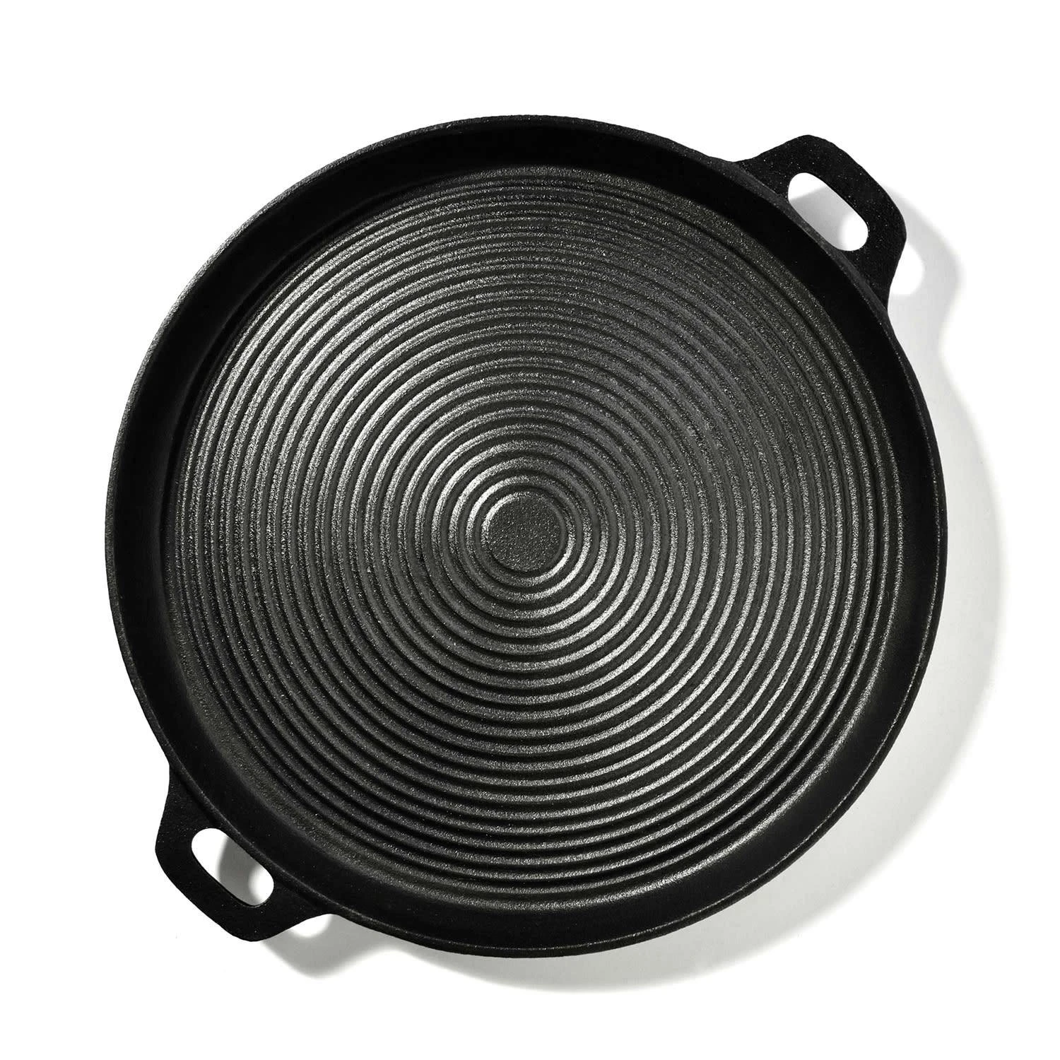 Die Canadienne Grillpfanne von Klarstein mit flachem Rand und geriffelter Oberfläche bietet gleich mehrere Vorteile: Zum einen liegt die robuste Steak- und Grillpfanne dank der schweren Gusseisen-Ausführung stabil auf jedem Grill-Rost. Zum anderen gewährleistet das Guss-Material der Grillplatte eine hervorragende Wärmeleistung und sorgt damit für ein perfektes Grillergebnis. Die Grill-Platte ist praktischerweise mit Tragegriffen ausgestattet und eignet sich hervorragend für Grillgut der unterschiedlichsten Art: von Steaks, über Fisch bis hin zu Gemüse. Selbstverständlich ist die Grillplatte schon voreingebrannt und kann direkt auf jedem Grill (Gasgrill & Holzkohle), auf offenem Feuer oder einem Herd verwendet werden.