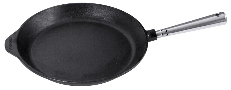 Bratpfanne, flach, aus Gusseisen, mit Griff aus Edelstahl 18/10, schwere, hochwertige Qualität