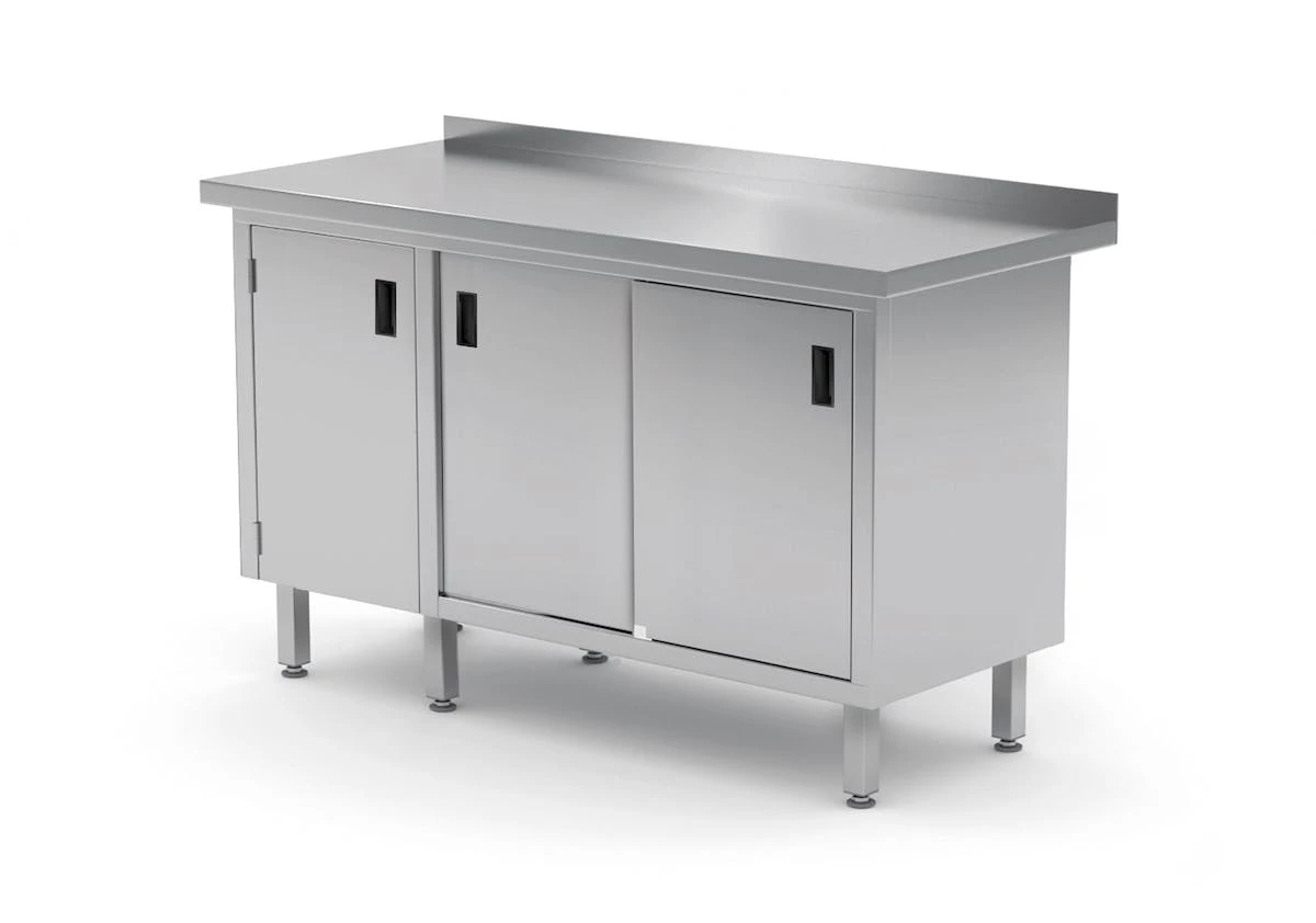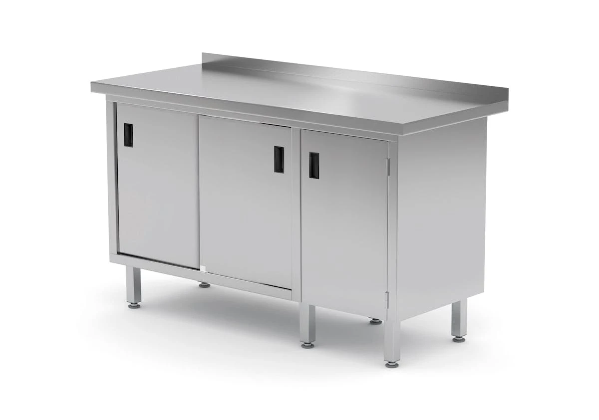 Säurebeständiger Stahl aus AISI 340Stabile SchweißkonstruktionVerstellbare FüßeMit 1 Klapptür und 2 SchiebetürenEbenfalls in Standard AISI 304 erhältlich (Aufpreis 15%)