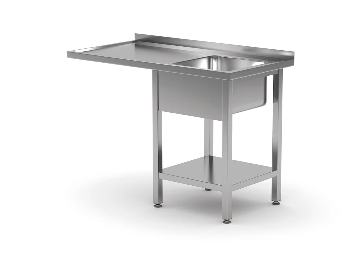 Gefertigt aus AISI 430 QualitätsstahlStabile Schweißkonstruktion1 Spülbecken & AblagefachVerstellbare FüßeEbenfalls in Standard AISI 304 erhältlich (Aufpreis 15%)