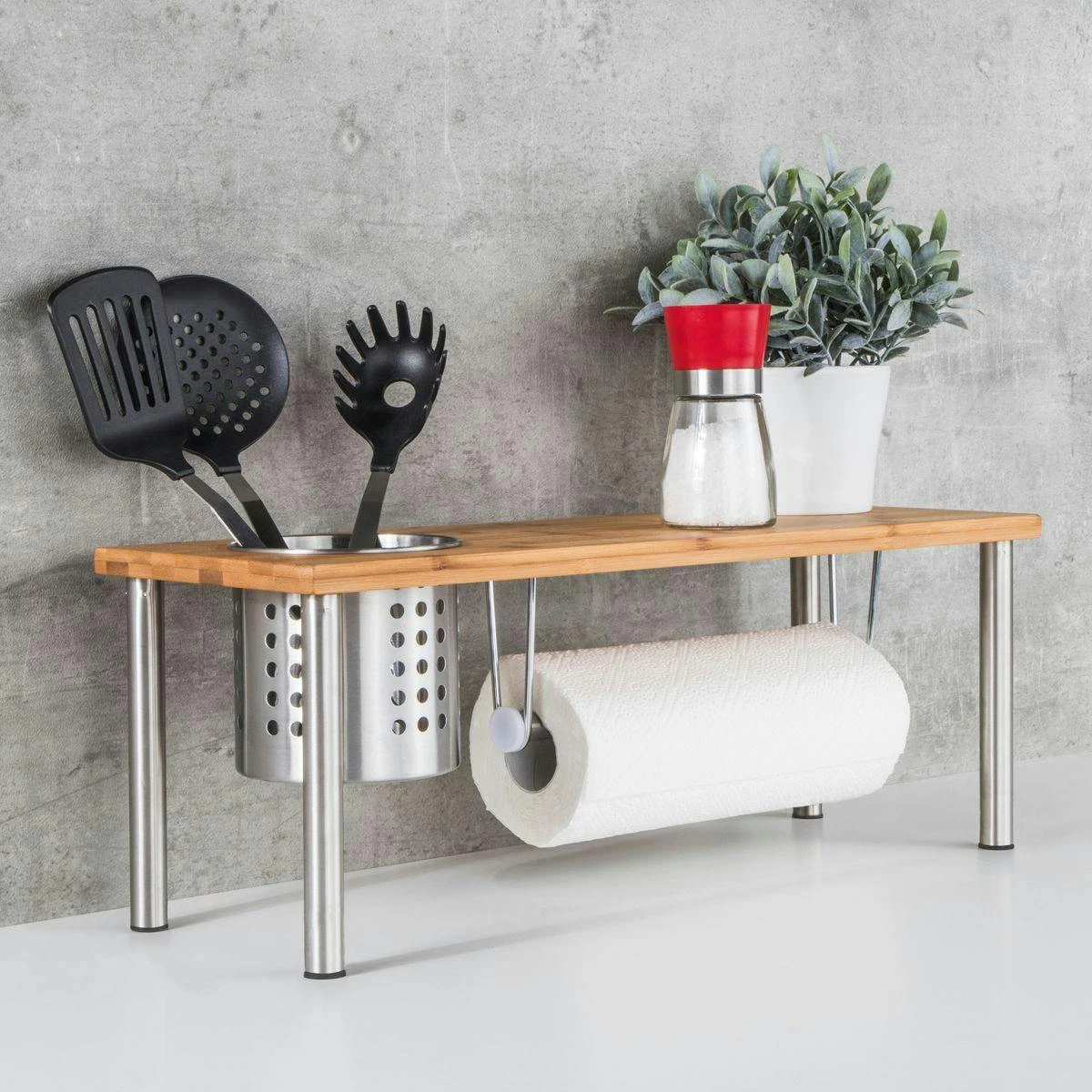 Praktisches Küchenregal mit Rollenhalter