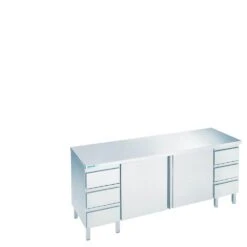 Arbeıtsschrank Mıt Schıebetüren Und Schubladenblöcken, Mıt Tıschplatte Hınten Auf 2200mm600mm900mm