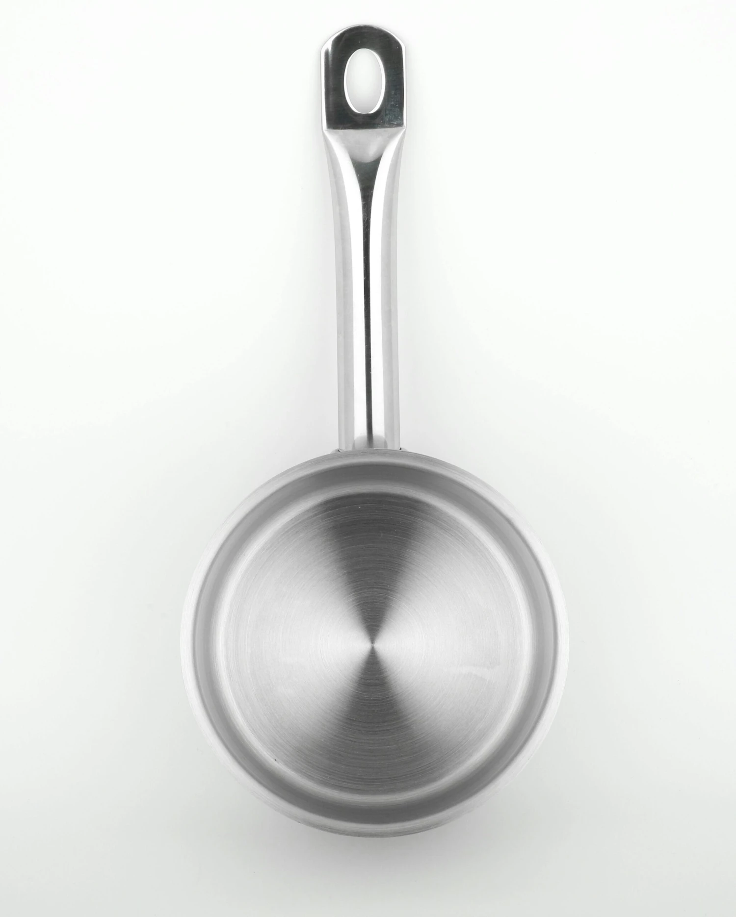Der METRO Professional Saucentopf aus Edelstahl hat ein Fassungsvermögen von 2 L. Das Produkt hat eine Höhe von 10,5 cm und einen Durchmesser von 18 cm. Der Topf ist spülmaschinenfest. Es ist für Elektro-, Keramik-, Induktions- und Gasherde geeignet.