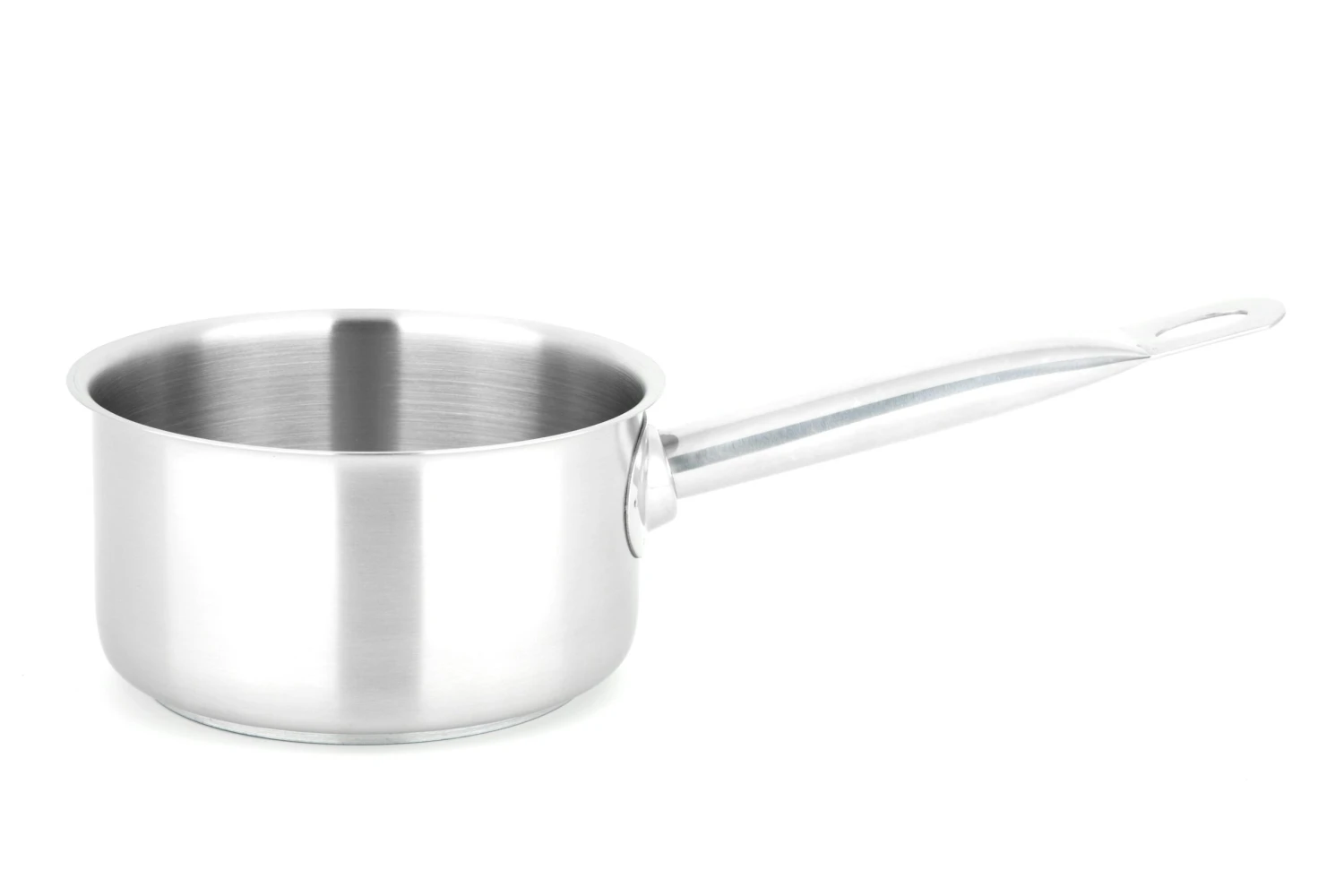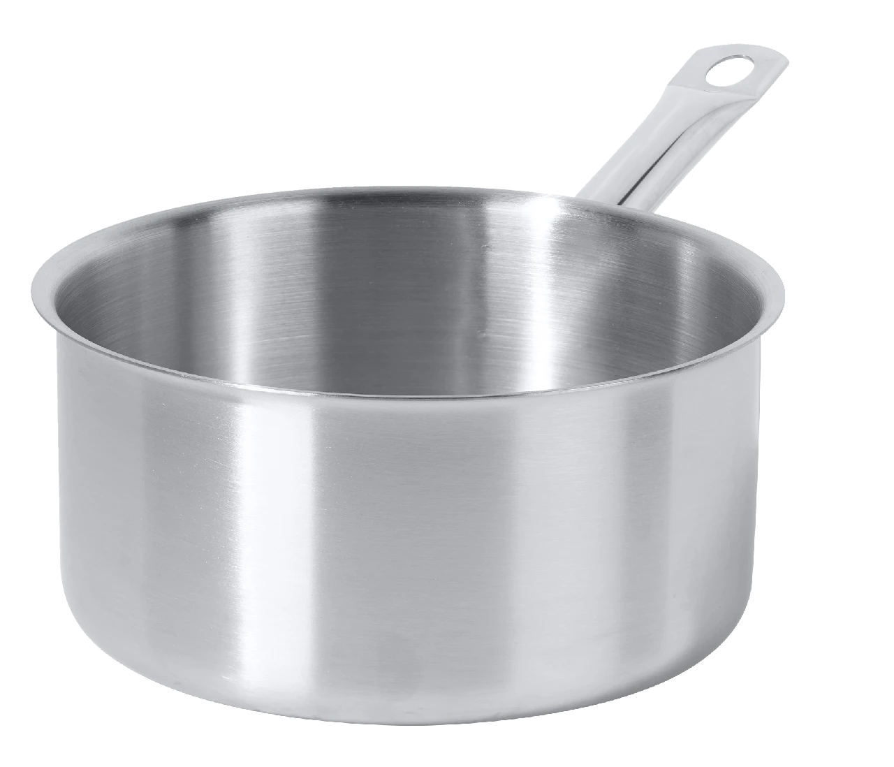 Die METRO Professional Edelstahlstielkasserolle hat einen Durchmesser von 20 cm und ein Fassungsvermögen von 3 l. Das Produkt hat eine Höhe von 10,9 cm, eine Dicke von 0,6 mm und einen 3,5 mm Aluminium-Sandwichboden mit Induktionsboden. Außerdem verfügt das Produkt über einen Edelstahlgriff und eine satinierte Außenseite aus Edelstahl. Der Topf ist für Elektro-, Gas-, Glaskeramik- und Induktionsherde geeignet.