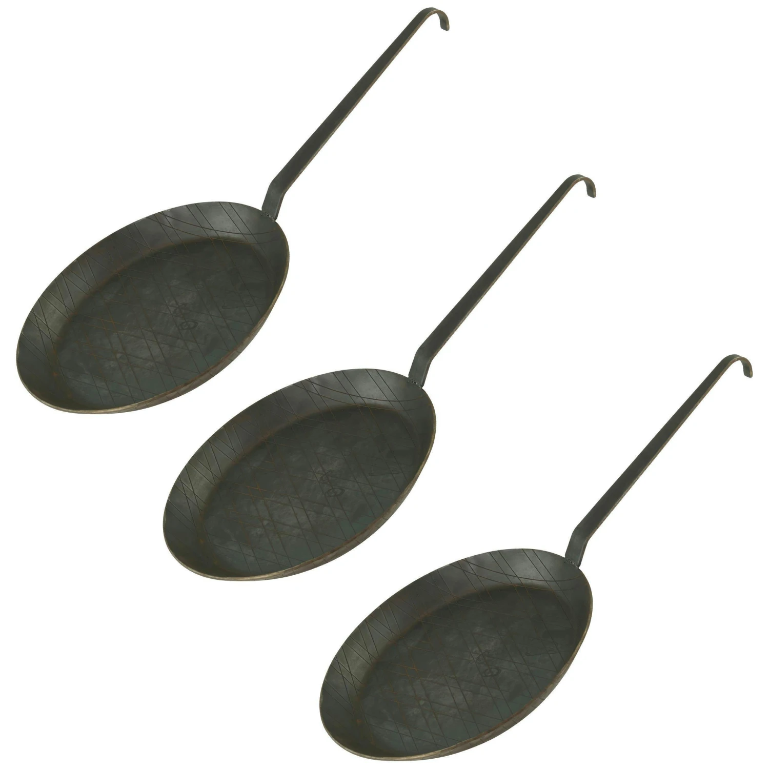 3 Stück Typ 3 – Schmiedeeiserne Brat- und Servierpfanne Ø 24 cm, Höhe 3 cm